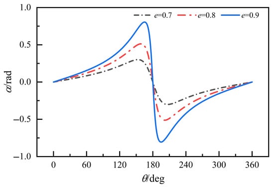 Variation in blade angle of attack under different eccentricities (J = 1.6).