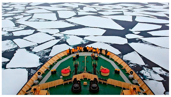Sea ice interaction with an icebreaker ship in Antarctica (https://www.pinterest.com.au/pin/310959549242558457/ (accessed on 25 May 2025)) [19].