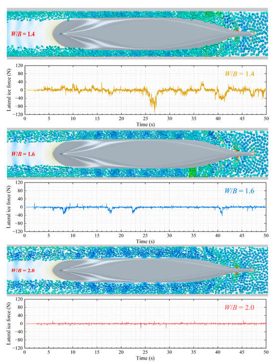 The behavior of a ship in ice channels was studied using model-scale tests, with channels having different widths and ice thicknesses [119]. Numerical simulations of these model test scenarios were carried out utilizing an in-house program designed for ship operation in ice. Subsequent numerical simulations were carried out with other ships to gain general insights into performance in narrow ice channels.