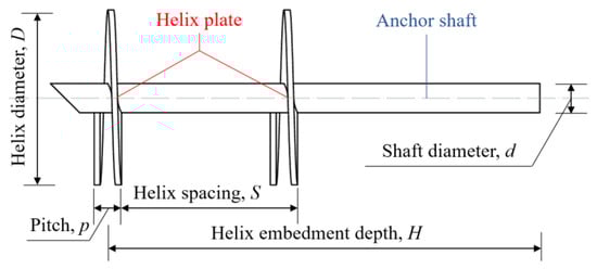 - Fu, S. The Uplift Capacity of Helical Anchors in Sand. Master’s Thesis, Northeast Dianli University, Jilin, China, 2016. [Google Scholar]