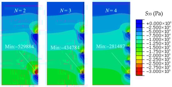 Contour maps of stress under the 20th cyclic Qmax loading condition for different N.