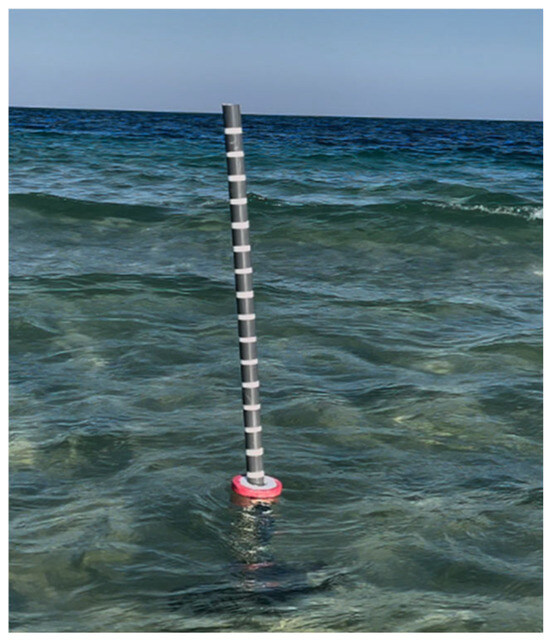 Field measurements were conducted at two locations at the Half Moon Bay area of the Khobar coastline south of the city to further characterize real-time wave conditions and support system tuning. A calibrated rod, marked at 5 cm intervals, along with a small buoy, shown in Figure 3, was used to observe and record the wave motion and wave height using a fixed-position camera.