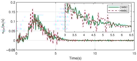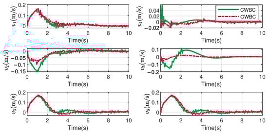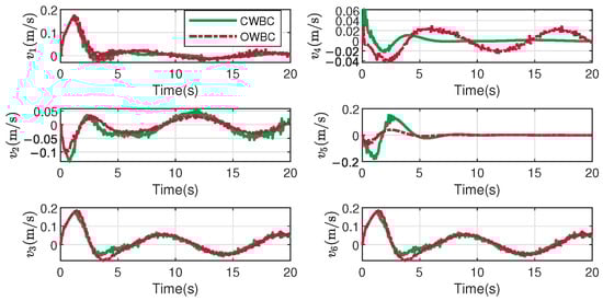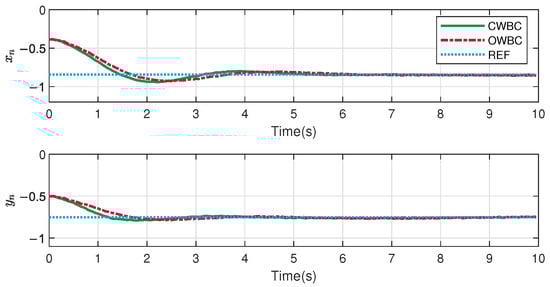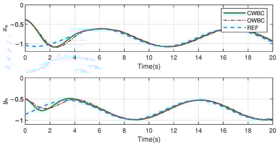 Precise trajectory tracking control is the key technology to improve the autonomy of UVMSs. Generally, the control algorithms of UVMSs are mainly classified into two main categories. In the most straightforward sense, the control algorithms of the main vehicle and the manipulator are implemented for the corresponding degrees of freedom (DOFs) independently. In [3], the authors combined a standard proportional–integral–differential (PID) control with a prior model to track the desired vehicle velocity, while a cascade joint controller was employed to control the velocity and angle of each joint. This approach does not consider the couplings, so the system performance is necessarily limited. In improved methods, the dynamic couplings between the vehicle and manipulator are treated as disturbances and handled by feedforward compensation [4]. In [5], the authors discussed the coupling property and proposed a Slotine sliding mode approach to reduce the coupling effect. Active compensation is implemented in the control law to counteract the undesirable effect by measuring or estimating the interaction force from the manipulator in [6]. In general, the simplicity of this approach makes it attractive, and some control techniques from manipulators [7,8] and unmanned aerial vehicles (UAVs) [9] can be readily referenced and transferred. However, the main vehicle will usually be designed to be much heavier than the attached manipulator(s), resulting in relatively smaller reactive forces from the manipulator(s) compared to the vehicle’s own weight, as in the Phoenix+SMART3S [2].