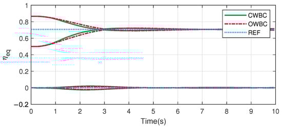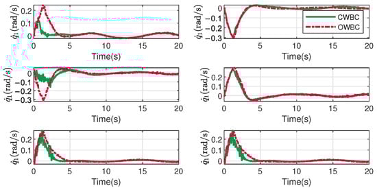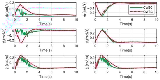 The velocity of the end-effector in the reference frame E is defined as . Then, the relationship between and can be obtained by