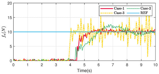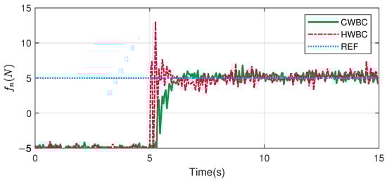 The contact force in normal direction is considered in this work. The reprojection process also has the advantage of allowing the use of the Jacobian matrix of ; then, the control task is obtained.