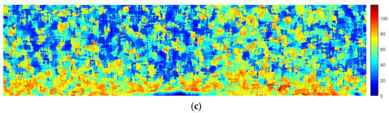 Tamura features exhibited robust adaptability to noise and illumination variations. The six feature components of Tamura are coarseness, contrast, directionality, roughness, line similarity, and regularity. Among them, coarseness , contrast , and directionality exhibited superior stability in texture description [31]. The above three quantitative analysis indicators were applied here to analyze image textures.