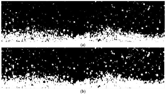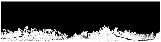 Initially, single-threshold segmentation was applied in the segmentation image of effective ocean wave areas (Figure 9d) using the ABC algorithm. The optimal threshold was determined by maximizing inter-class variance, which ensured the best separation performance. Ultimately, the image was binarized based on the obtained optimal threshold, as shown in Figure 10.