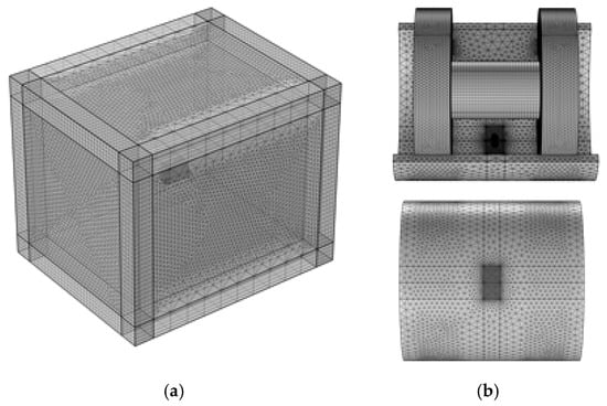 Finite element simulation model: (a) gap air domain; (b) air enclosure domain.