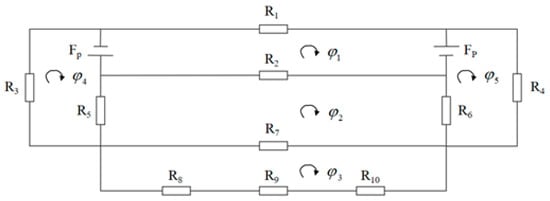 The finite element method (FEM) is used to model magnetic flux leakage (MFL) fields, providing high computational accuracy and flexibility, especially for creating effective mathematical models of complex defect geometries []. Finite element solutions for defect-induced MFL fields are derived from Maxwell’s equations: a cylindrical coordinate system (r, θ, z) is adopted, where z corresponds to the pipeline-axial direction, encompassing Gauss’s law for electricity, Gauss’s law for magnetism, Faraday’s law of electromagnetic induction, and Ampere’s circuital law.