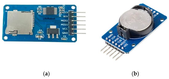 Data storage module: (a) Micro SD card module; (b) DS3231 real-time clock module.