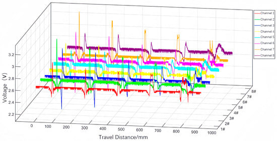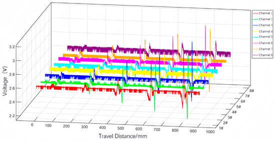 Variation of eight-channel voltage signals at different defect lengths.