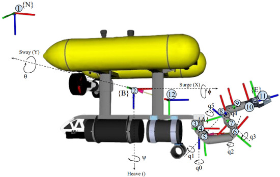Figure 4 shows the frames and joints of the Girona 500 I-AUV and Table 1 explains the frame of the figure.