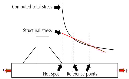 Schematic of hot spot stress approach. Adapted from [] with permission from IIW/2018.