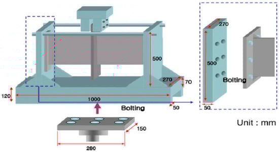 In this study, the fatigue life of longi-web connection in the hull structure is evaluated. Figure 6 illustrates a typical longi-web connection in a hull structure. To verify the validity of fatigue life estimated by each local stress approach, it is essential to conduct fatigue test. Kim et al. conducted fatigue tests using specimens that simulated the geometry of longi-web connection in the hull structure. An overview of the specimen and the jig is shown in Figure 7 [,].