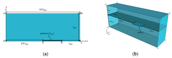 Computational domain of (a) pontoon and (b) free-surface flow simulations.