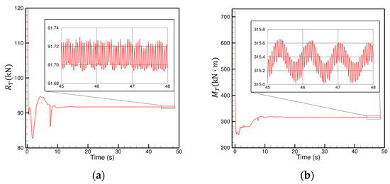 The temporal convergence of (a) total resistance and (b) Munk moment at Fr = 0.8.