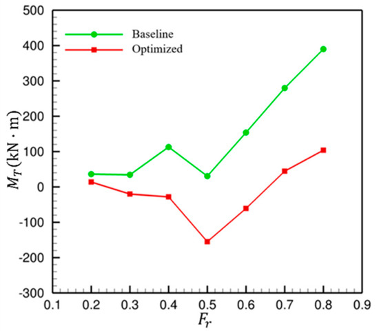 Comparison of Munk moment between baseline and optimized designs.