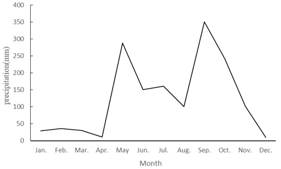 Water is the most important limiting ecological factor in arid sandy ecosystems, mainly being present as soil water. Soil water is the material basis for plant growth and survival. Its low level restricts the formation and development of vegetation in sandy areas. Degree of dune mobility reflects a balance between active sand transport, vegetation growth, and the development of surface crusts [58]. Vegetation cover on sand dunes mainly depends on wind power and precipitation. When this cover decreases below a minimal percentage, dunes will start moving [59]. Soil water content and its dynamic changes determine the occurrence or reversal of land desertification, and it is the main regulator of land desertification [60]. Rainfall is the main source of water in desert and sandy land, and the water infiltrated into aeolian sandy soil by rainfall is basically the only source of deep seepage water. Therefore, the soil moisture in the deep layer below 150 cm has a close relationship with precipitation and frequency [61]. The interannual variation process of leakage is basically consistent with the seasonal variation in precipitation, but there is a certain lag [62]. Moreover, in areas with heavy rainfall, the annual and seasonal dynamic changes in the two are more similar. With the decrease in precipitation, the similarity of the variation trend gradually decreases [63]. The sand activity is closely related to the properties of underlying surfaces such as sand particle size and sand moisture. Precipitation can directly or indirectly hinder the development and evolution of sand dunes, and an increase in precipitation leads to stronger agglomeration between sand particles, making it more difficult to transport sand [64]. The annual precipitation in the study region from 2020 to 2024 is 1508.96 mm, with the highest precipitation in autumn (September to November) at 693.88 mm, accounting for 45.98% of the annual precipitation. The lowest precipitation in winter (December to February) is 74.69 mm, accounting for 4.95% of the annual precipitation (Figure 9). The autumn drift potential in the study area is 257.41 VU, accounting for 46.73% of the annual drift potential, and the winter drift potential is 142.64 VU, accounting for 25.89% of the annual drift potential. Although there is more precipitation in autumn in the study region, it is mainly affected by storm surges, which have higher sand-blowing wind, leading to more sand activation. The combination of factors such as lower temperatures, less precipitation, and strong winds in winter makes autumn and winter the main seasons for aeolian activity in the study region.