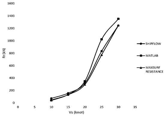 A pair of expansions of this equation has been formulated by Molland et al. (2011) [17] for the RW component of Equation (7). Holtrop and Mennen (1982) stated that the value for total resistance held true for Fn below 0.40, for increased values of Fn [16,17]. In this investigation, the prediction method proposed by Holtrop and Mennen (1982) and its revisions is used only for resistance validation of the hull form; hence, the propulsion prediction is ignored [16].