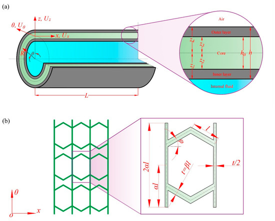 11], have shown significant vibration-damping and noise-reduction capabilities. The incorporation of honeycomb structures as core materials in the fabrication of sandwich composite pipes and shell structures retains their inherent high specific strength, high specific stiffness, and high specific energy absorption rate [