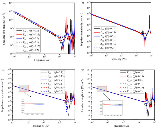 β, while the magnitudes of mechanical–acoustic and acoustic–mechanical impedances decrease. The elevation of