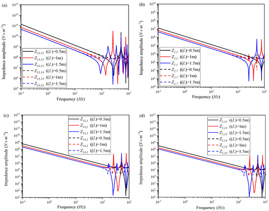 L corresponds to a reduction in both the resonance and anti-resonance frequencies. Additionally, within the low-frequency range, the amplitude of the impedance diminishes with an increase in