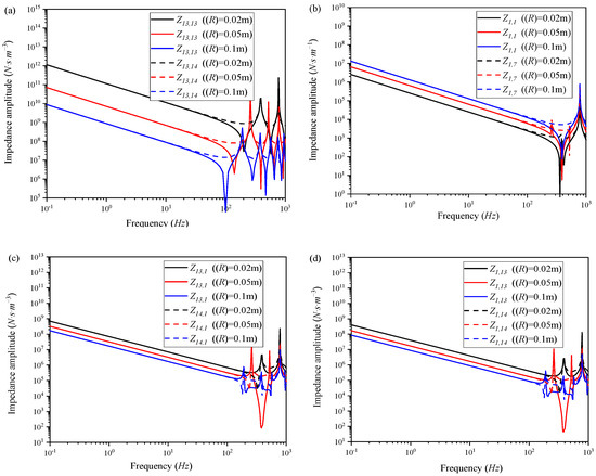 R is associated with a decrease in the resonance and anti-resonance frequencies for acoustic, mechanical–acoustic, and acoustic–mechanical impedance, whereas the frequencies for mechanical impedance remain relatively unchanged. Additionally, in the low-frequency range, an increase in