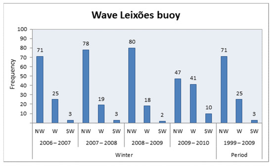 Analysis of winter data from 2006 to 2010 confirms this directional pattern, except for the winter of 2009–2010, during which there was an increased incidence of W and SW wave conditions. This anomaly is associated with a higher frequency of low-pressure systems and their associated frontal boundaries [28].