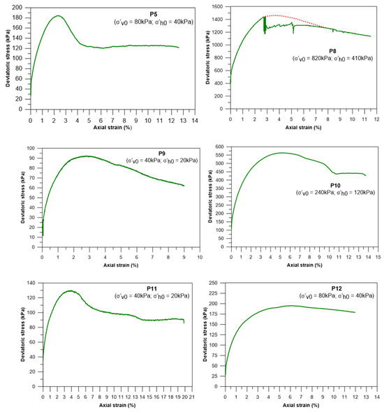 Triaxial compression tests were conducted on six undisturbed soil specimens using anisotropic consolidation under CK0D conditions. All tests were performed under drained conditions, with a monotonic increase in vertical stress.