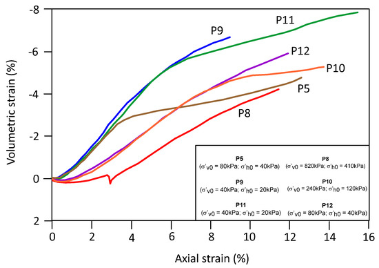 Isotropic consolidation was then performed under the selected effective stress, followed by anisotropic consolidation to achieve a K0 stress condition of 0.5. This state was maintained for 24 h to ensure equilibrium before the shearing phase.