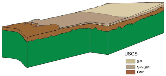 - Well-graded gravel (GW): located between 55 m and 61 m depth, consisting of 78% well-graded gravel, 19% sand, and 3% silt-clay; Cu = 5.62 and Cc = 2.31.