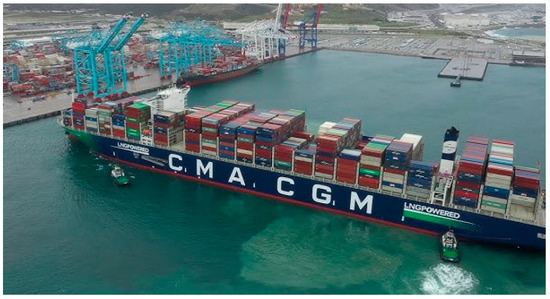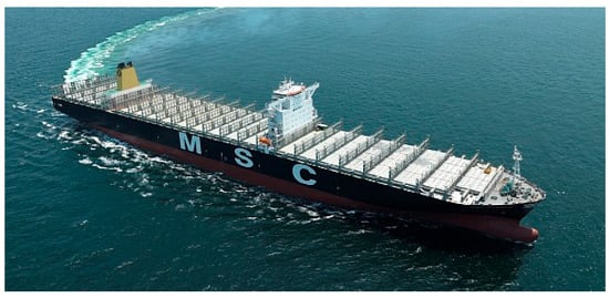 An example of Container Vessel (https://www.monthlymaritimekorea.com/news/articleView.html?idxno=7550/ accessed on 15 July 2025).