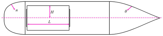 The data of PUV model are as follows: a = 500 mm, b = 2000 mm, c = 1000 mm, d = 500 mm, and remain unchanged. n and θ designate shape-controlling parameters for the bow and stern, respectively, with larger values producing more rounded profiles, as depicted in Figure 4.