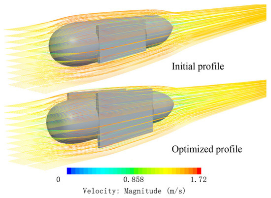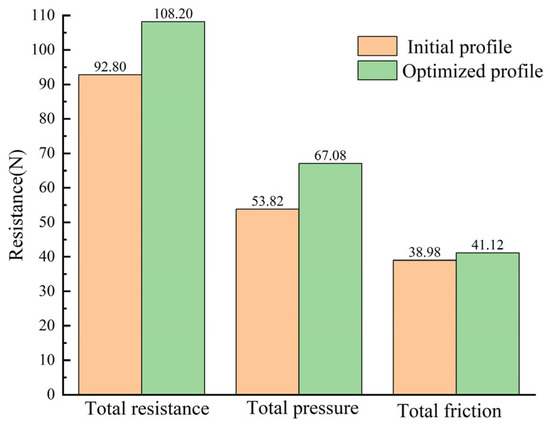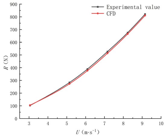 Since the experimental prototype has not yet been fabricated, the analytical methods presented in this paper, involving mesh generation and boundary condition settings, were applied to the Fully Appended SUBOFF model for the purpose of validating the effectiveness of the results. Since the presence of solar panels is equivalent to an appendage of the vessel, the Fully Appended SUBOFF model is selected. The numerical results were compared with the experimental data provided by the Defense Advanced Research Projects Agency of the United States [36], as depicted in Figure 7. It can be observed that the numerical simulation results exhibited favorable agreement with the experimental data. Therefore, the aforementioned numerical computation scheme can be applied in the subsequent optimization process.
