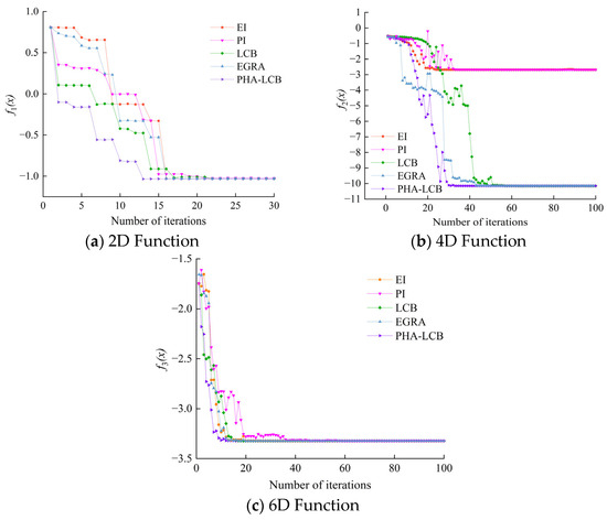 - A PHA-LCB infill methodology was proposed. It synergistically integrated global exploration with localized exploitation through a three-tiered adaptive framework. This innovative approach introduced a dynamic equilibrium mechanism that mediated between extensive design space investigation and refined local optimization, wherein the balancing coefficients governing the three operational phases were progressively modulated with real-time surrogate model fidelity metrics and convergence indicators. The methodology employed a hierarchical decision-making architecture where the initial emphasis was on broad spatial reconnaissance to ensure comprehensive domain coverage, followed by iterative refinement cycles for prioritizing regional optimization in proximity to identified promising candidates. Validation against benchmark test functions demonstrated superior precision and convergence rates compared to conventional optimization approaches following EI, PI, LCB and EGRA criteria.