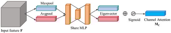 To enhance feature representation, a tandem structure combining channel attention and spatial attention is introduced. The structure of the channel attention is illustrated in Figure 5, where the channel attention mechanism captures channel-wise statistics via global average pooling, as follows: