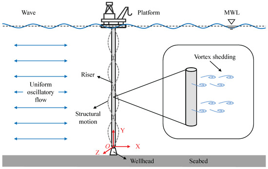 Sketch of riser undergoing VIV subjected to uniform oscillatory flow.