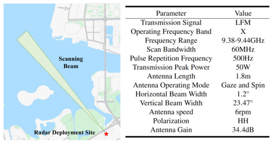 In 2023, we deployed an X-band pulse compression radar along the coast of Haikou in Hainan Province, China (Qiongzhou Strait), for maritime observation. We collected sea clutter and target-measured samples as our dataset for research on maritime target detection. The actual deployment location of our radar is shown in Figure 6.