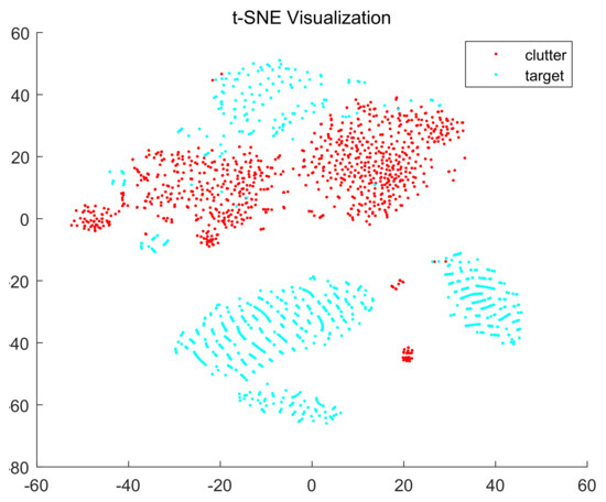 Visualization results of features based on t-SNE [34]. This figure demonstrates the high-dimensional classification capability of our neural model for target samples and clutter samples.