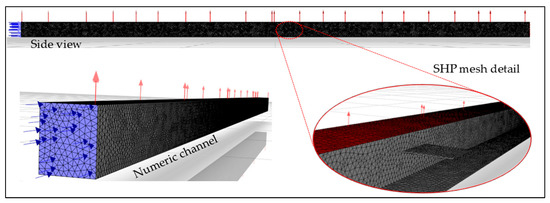 The subdivisions of the 3D NWT for the SHP-NO condition were defined based on an experimental study by Orer and Ozdamar [20]. For the SHP-O condition, the channel subdivisions were established from a consolidated study developed by Seibt et al. [12] and are divided into three regions (Figure 6).
