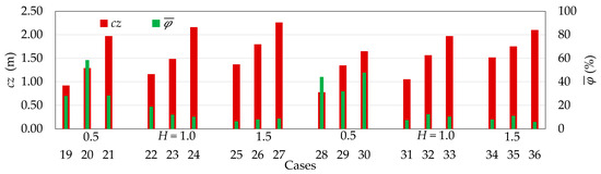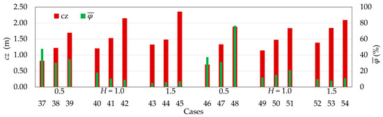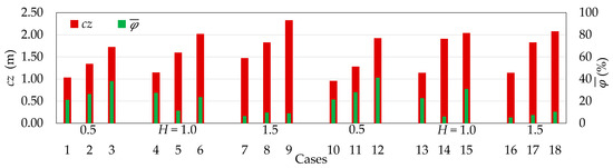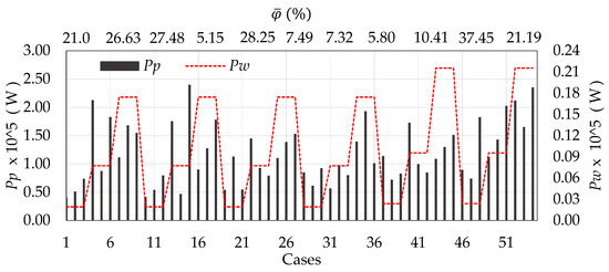 The SHP efficiency parameter φ was calculated based on the theoretical framework [20,54] and simulation data, following the procedures outlined therein. Efficiency was determined as the ratio between the average power available in the flow and the average wave power :