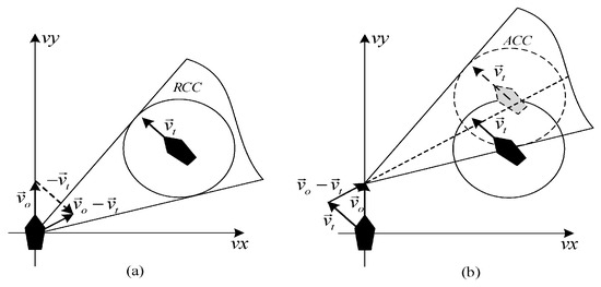 Velocity obstacle algorithm: (a) RCC and (b) ACC [31]. Reproduced with permission from [31].