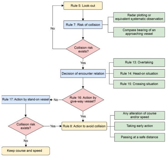 Collision avoidance process based on COLREGs rules [7]. Reproduced with permission from [7].