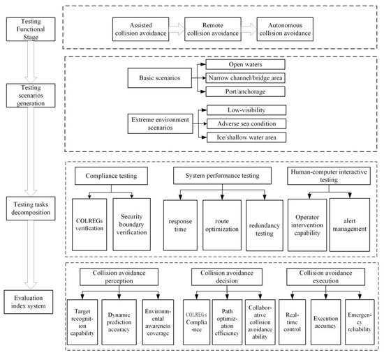 For researchers, this review first provides a decision-making matrix for algorithm-testing matching and establishes a framework integrating autonomous collision avoidance behavior prediction, situational awareness, or digital twin strategies for intelligent vessels. For instance, algorithms with high computational complexity are better validated through model tests combined with digital twins, whereas fast-response algorithms can be efficiently verified via simplified virtual simulations. Second, for practitioners, it proposes a progressive testing strategy aligned with vessel intelligence levels, ranging from virtual simulations for basic collision avoidance functions to full-scale trials in high-density traffic areas, with clear thresholds for transitioning between stages. Third, for standardization bodies, it highlights the necessity of establishing algorithm-classification-based standards, such as formulating differentiated testing requirements for rule-based versus AI-driven collision avoidance systems and incorporating “human–machine interaction safety” into evaluation indices to address challenges in mixed traffic environments.