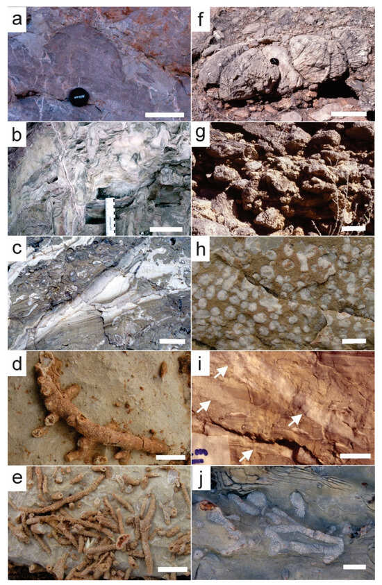 - Kobluk, D.R.; James, N.P.; Pemberton, S.G. Initial diversification of macroboring ichnofossils and exploitation of the macroboring niche in the Lower Paleozoic. Paleobiology 1978, 4, 163–170. [Google Scholar] [CrossRef]