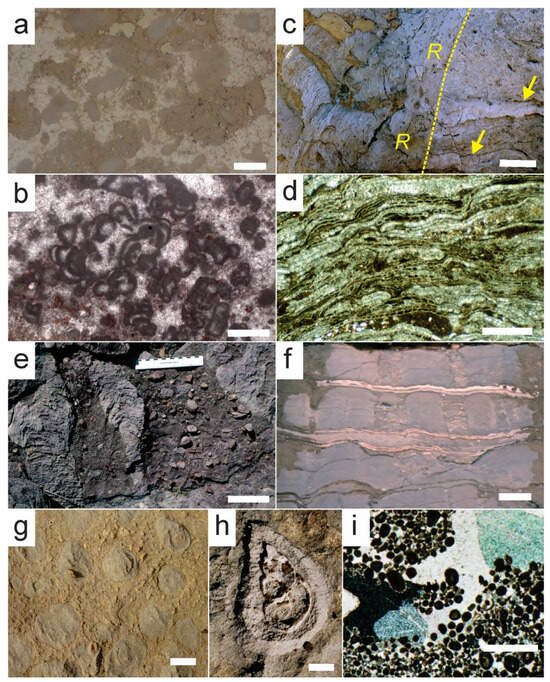 - Zhang, H.S.; Dai, M.-Y.; Qi, Y.-A.; Han, L.-L.; Yin, Z.-L.; Chen, S.-H.; Lin, L.-B. Girvanella fossils from the Phanerozoic: Distribution, evolution and controlling factors. J. Palaeogeogr. 2024, 13, 924–938. [Google Scholar] [CrossRef]