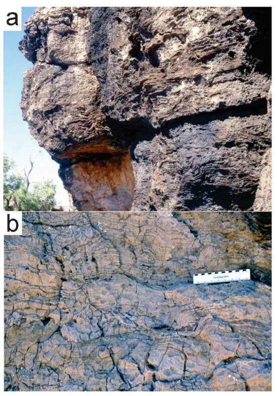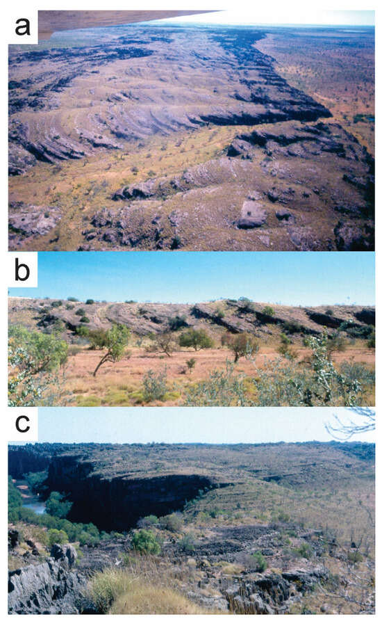 - George, A.D.; Chow, N. Palaeokarst development in a lower Frasnian (Devonian) platform succession, Canning Basin, northwestern Australia. Aust. J. Earth Sci. 1999, 46, 905–913. [Google Scholar] [CrossRef]
