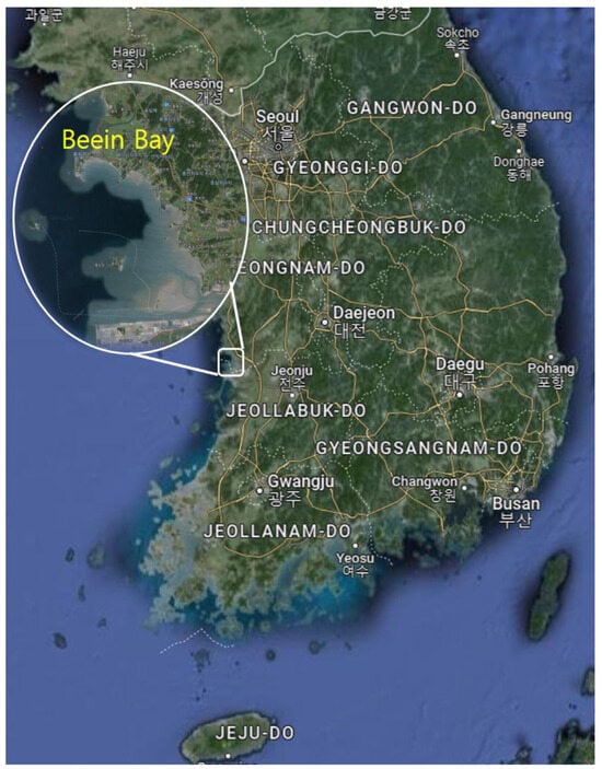 Geographic location of Beein Bay, the study site used for simulating seaweed aquaculture dynamics. The base map is sourced from Google Maps (Google LLC, Mountain View, CA, USA).