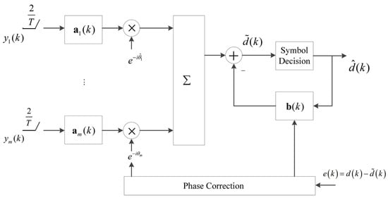The filter coefficients and phase correction factors can be obtained based on the input signal. Defining the coefficient of the m-th feedforward filter as while is the length. The corresponding input vector is . Assuming the channel is time invariant, and the channel phase remains approximately unchanged within each symbol interval, the output of each feed-forward filter after phase correction is