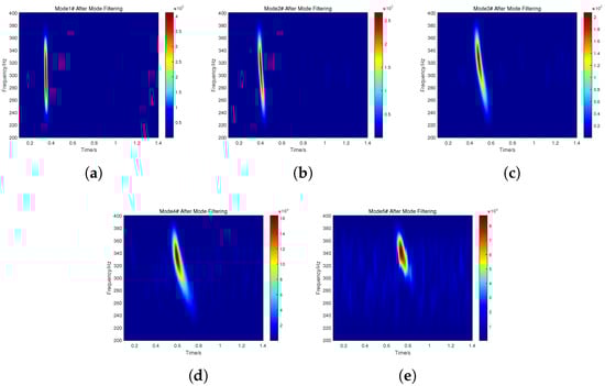 Results of the broadband mode filtering. (a) Mode 1. (b) Mode 2. (c) Mode 3. (d) Mode 4. (e) Mode 5.